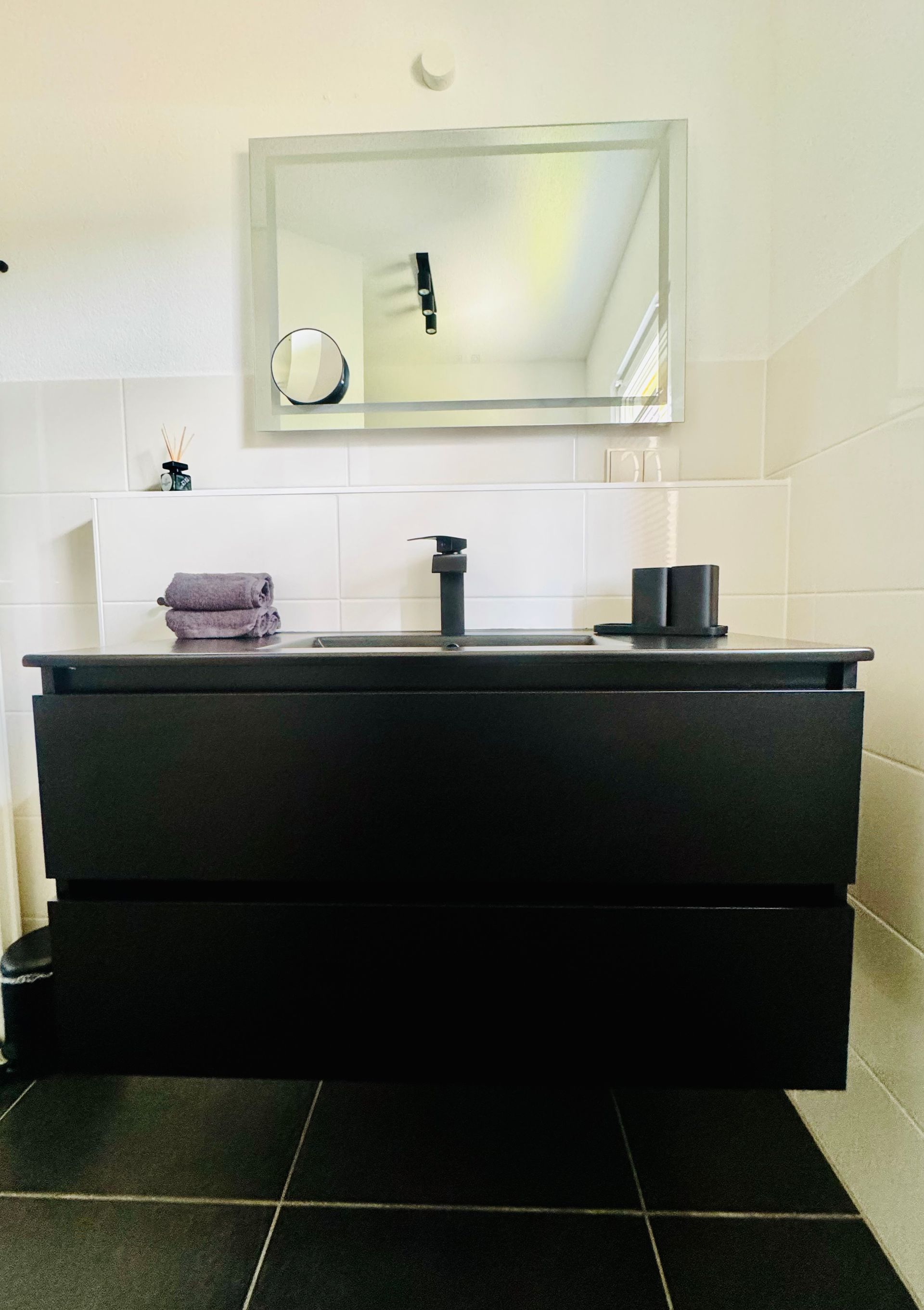 The modern kitchen leaves nothing to be desired and is equipped with all essential utensils: hob, oven, fridge, dishwasher, coffee machine (pump espresso), kettle and toaster for a relaxed breakfast. A microwave, crockery, cutlery and knife block, beer, wine and champagne glasses, tea towels, dish soap and dishwasher tablets are also available.