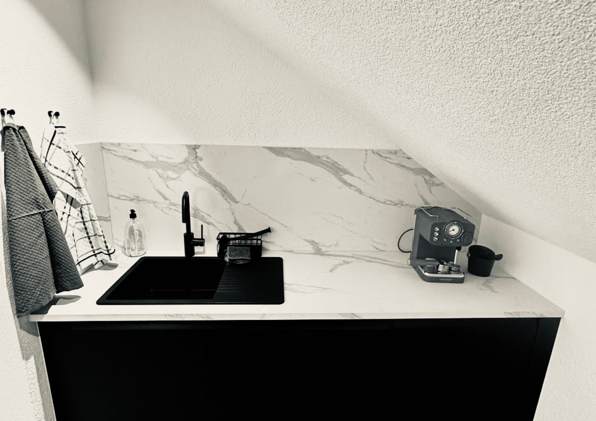 Küche: Die moderne Küche lässt keine Wünsche offen und ist mit allen notwendigen Utensilien ausgestattet: Herd, Ofen, Kühlschrank, Geschirrspüler, Siebträgermaschine, Wasserkocher und Toaster für ein entspanntes Frühstück. Eine Mikrowelle, Geschirr, Besteck und Messerblock, Bier-, Wein- und Sektgläser, Geschirrtücher, Spülmittel und Geschirrspültabs sind ebenfalls vorhanden.